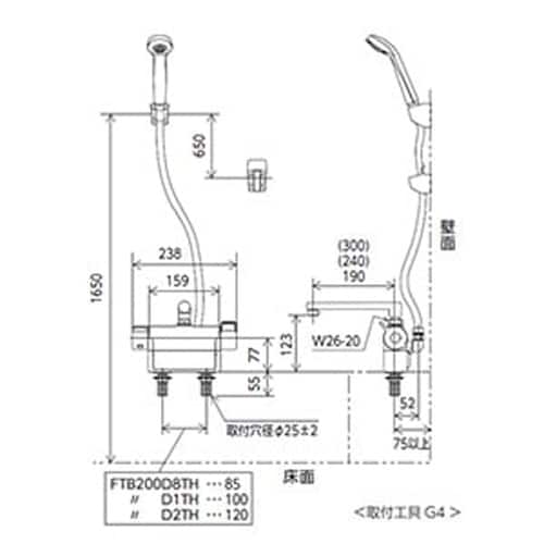 本体取付穴(mm):22ー25 | 取付ピッチ(mm):85 | ホース長さ(m):1.45 | 色:シャワーヘッド/グレー、シャワーホース/グレー …