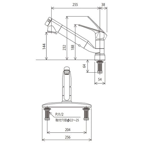 浄水器内蔵タイプ、シングルレバー混合栓。 |