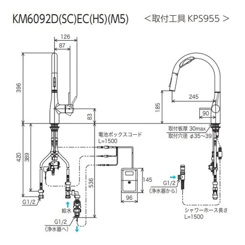電源:電池(単3アルカリ4本) | 仕様:吐水口回転規制110° | カラー:マットブラック | 単位:1個