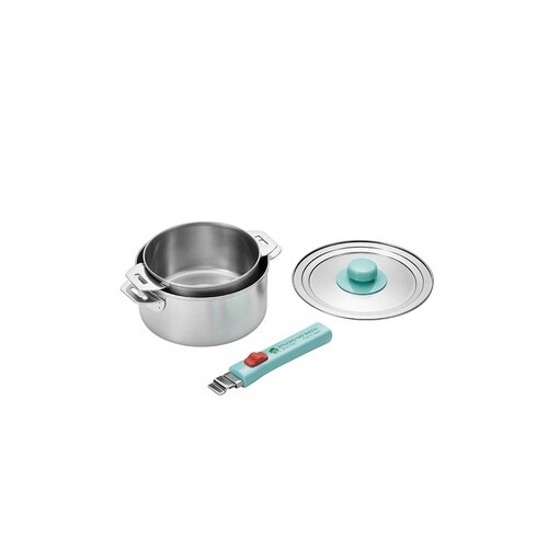 ステンレス鍋14cm/350g、ステンレス鍋16cm/400g、着脱ハンドル/130g、兼用蓋14ー16cm用/120g
