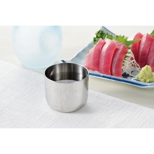 外面のミラー仕上げが美しいステンレス製のぐい呑み。 |
