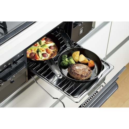 ハンドルも耐久性に優れた鉄製なのでガス火はもちろんアウトドアでの焚火・炭火にも使用可。 |