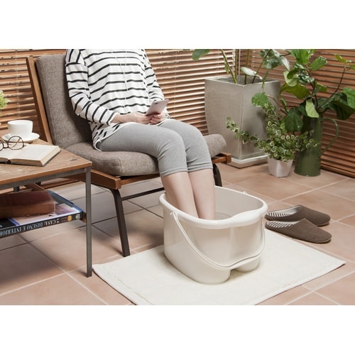 お好みの温度のお湯を注いで足を浸すだけ。お部屋で気軽にゆったり足湯を楽しむことがで来ます。 |