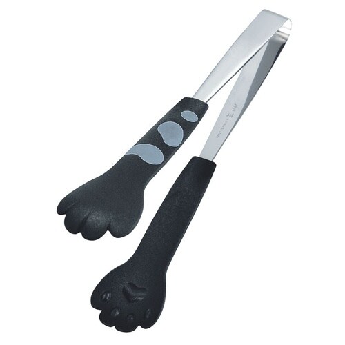 可愛い猫の手がしっかり料理をきゃっち。コンパで可愛い卓上トング。