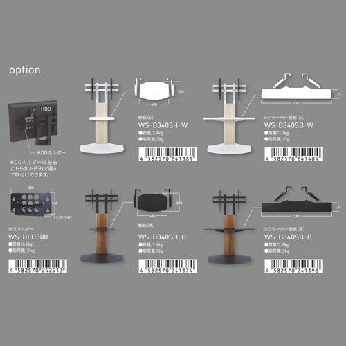 壁寄せTV台 WS−B840用のオプションパーツ。サイズに合ったAV機器等を設置出来ます。 |