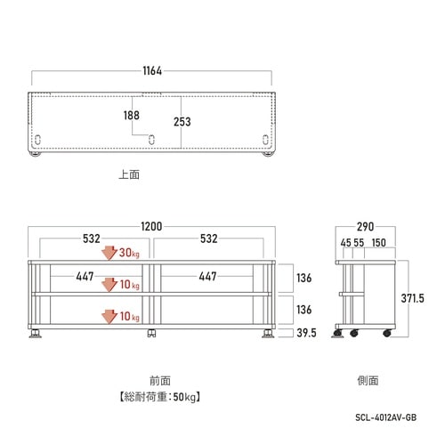 人気のグレー色とブラックのシンプルなキャスター付オープンローボード。 |