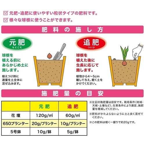 きれいなお花を咲かせるための球根専用有機入り肥料です。 |