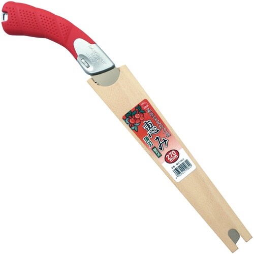 鞘付タイプの刃長270mm。薄刃の果樹剪定鋸。 |