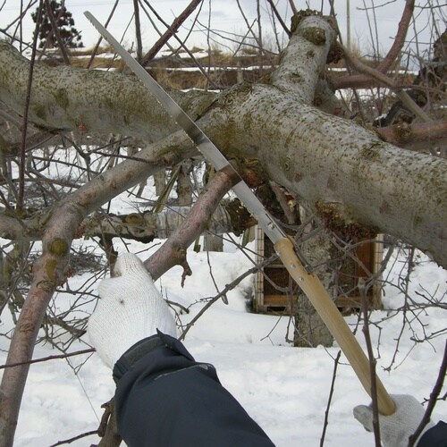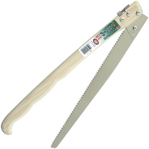 折込タイプの刃長330mm。厚刃の果樹剪定鋸。 |