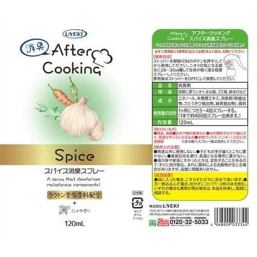 ギョウザやカレーなどの調理後にスプレーするだけで、気になるニオイを消し去ります。 |