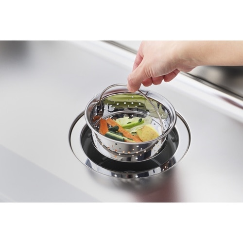 銅を含有した抗菌ステンレスを使用したゴミ受け。 |