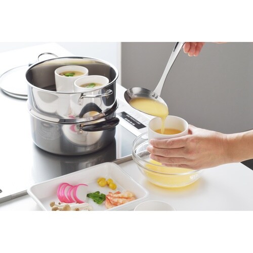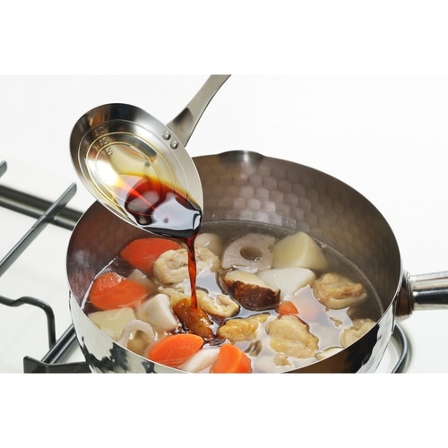 小ぶりな器や繊細なお料理でも、こぼさずに注げる横口お玉。 |