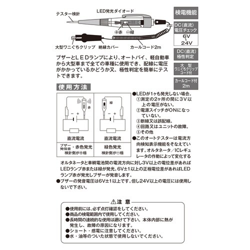 オートバイ、軽自動車から大型車まで使用できる。 |