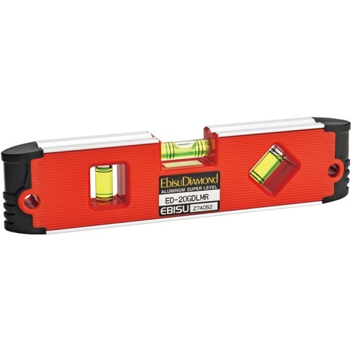 アルミ合金押出材硬化処理、ABS樹脂/エラストマーキャップ、パイプ測定可能、超強力磁石1個付き、4本線アクリル気泡管、感度/精度、〈感度〉0.50mm/m=0.0286°〈精度〉±1.50mm/m=±0.0859°以内