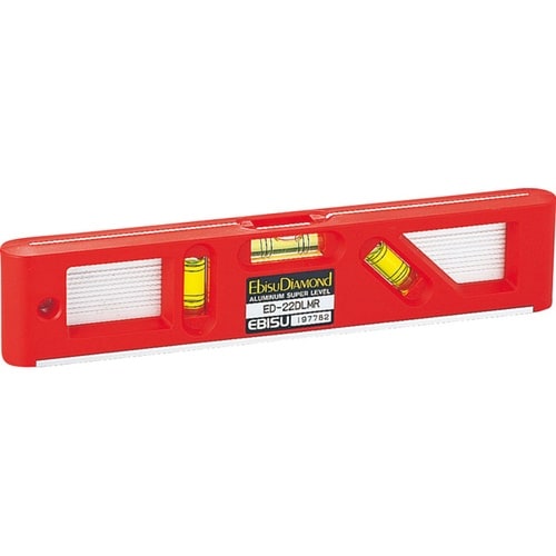 アルミ合金押出材硬化処理、ABS樹脂カバー、磁石1個付き、4本線アクリル気泡管、感度/精度、〈感度〉0.50mm/m=0.0286°〈精度〉±2.50mm/m=±0.1432°以内