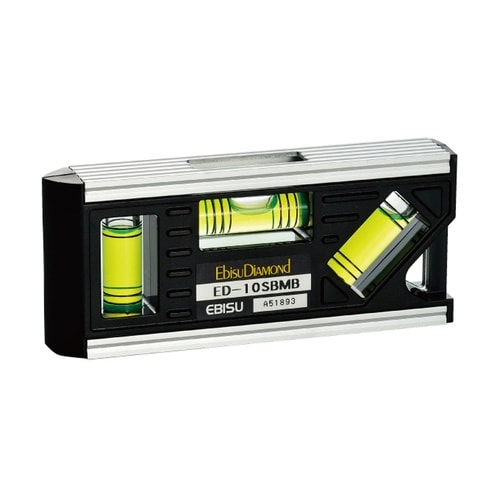 アルミ合金押出材硬化処理、ABS樹脂カバー、アルマイト・クリアー塗装仕上げ、パイプ測定可能、超強力磁石1個付き、6本線アクリル水平気泡管、4本線アクリル垂直・45°気泡管、感度/精度、〈感度〉0.50mm/m=0.0286°〈精度〉±1.00mm/m=±0.0573°以内