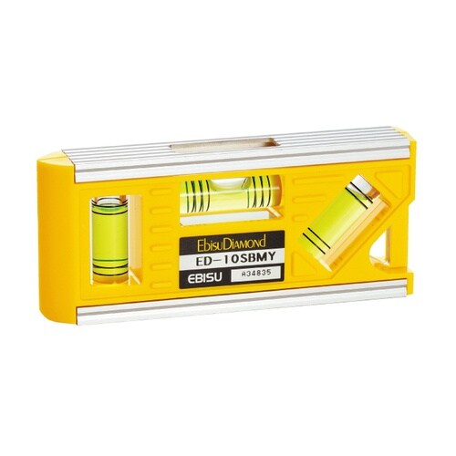 アルミ合金押出材硬化処理、ABS樹脂カバー、アルマイト・クリアー塗装仕上げ、パイプ測定可能、超強力磁石1個付き、6本線アクリル水平気泡管、4本線アクリル垂直・45°気泡管、感度/精度、〈感度〉0.50mm/m=0.0286°〈精度〉±1.00mm/m=±0.0573°以内