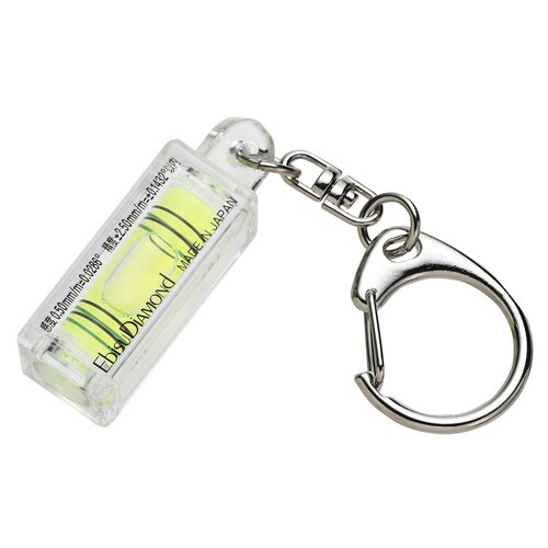 キーホルダー付き、4本線アクリル気泡管、感度/精度、〈感度〉0.50mm/m=0.0286°〈精度〉±2.50mm/m=±0.1432°以内