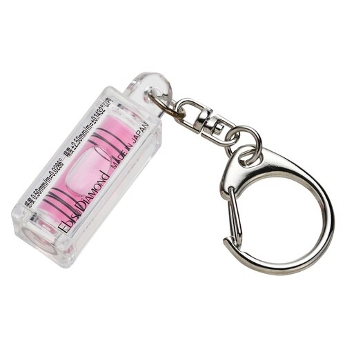 キーホルダー付き、4本線アクリル気泡管、感度/精度、〈感度〉0.50mm/m=0.0286°〈精度〉±2.50mm/m=±0.1432°以内
