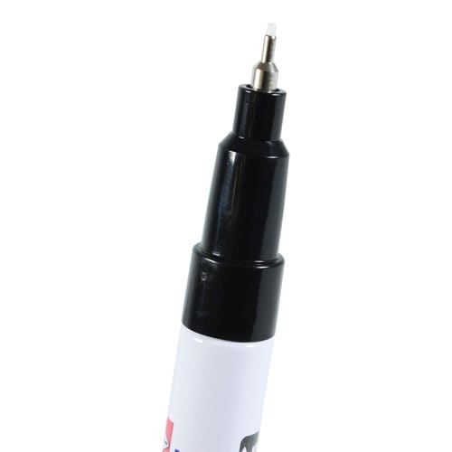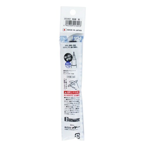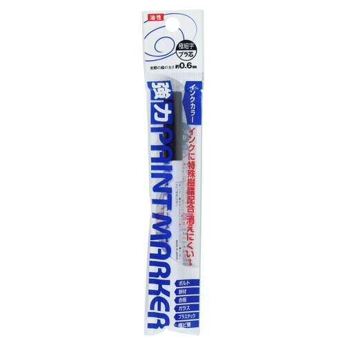 インクに特殊樹脂配合でしっかり定着。線の太さ約0.6mmの極細タイプ。狭いところに便利です。