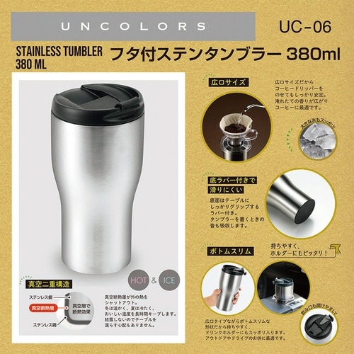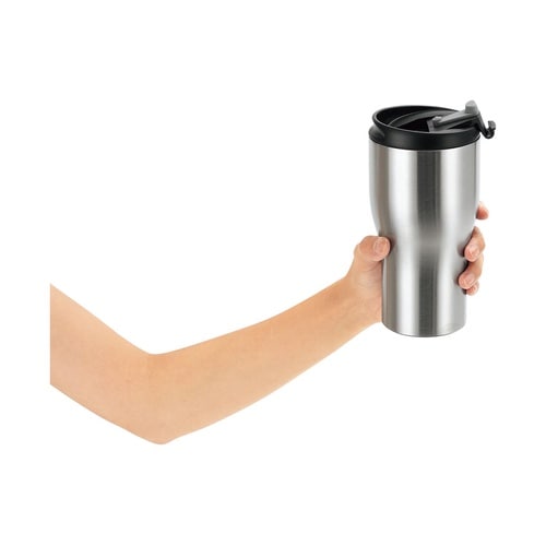 広口タイプながらボトムスリムな形状だから持ちやすく、車のドリンクホルダーにもスッポリ入ります。 |
