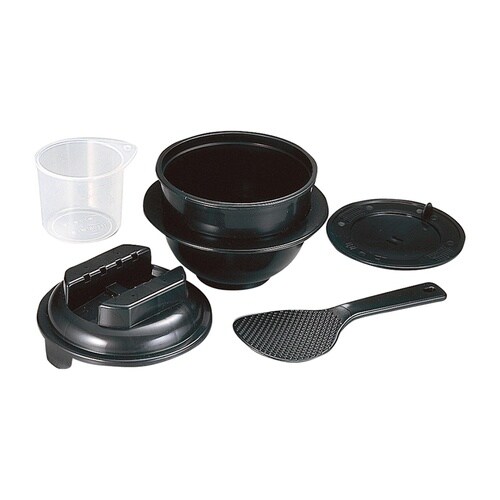 本体/耐熱ポリプロピレン(備長炭粉末配合)(耐熱温度 145度、耐冷温度 −20度)、飯ベラ/ポリプロピレン(備長炭粉末配合)(耐熱温度 120度、耐冷温度 −20度)、計量カップ/ポリプロピレン(耐熱温度 120度、耐冷温度 −20度)