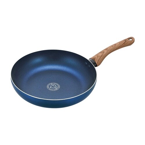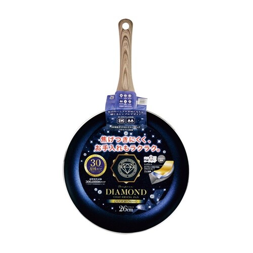 表面加工/内面:ダイヤモンド微粒子配合ふっ素樹脂加工、本体/アルミニウム合金(底の厚さ2.3mm)、はり底/18−0ステンレス鋼、取手/フェノール樹脂(木目調転写)