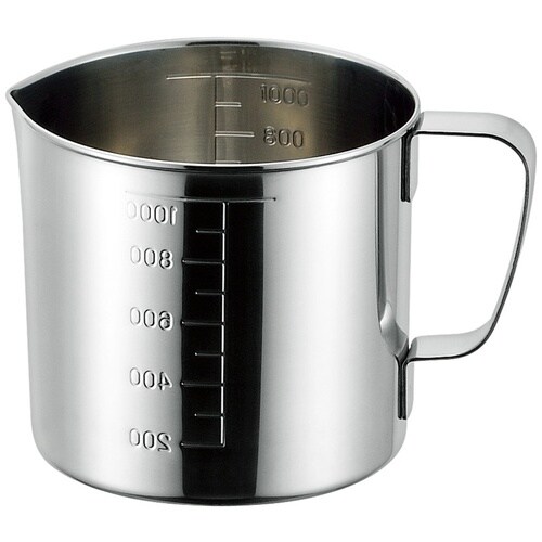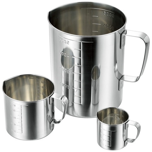 本体内径:φ68mm | 本体高さ:73mm | 本体板厚:0.5mm | 取手板厚:1.5mm | 製品重量:105g | 目盛表示:50/100/…