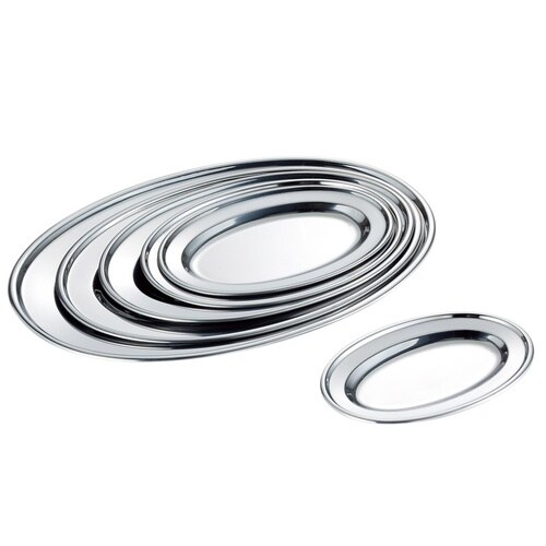 飲食店などで、現在も幅広く利用されている楕円形状のステンレス皿。 |