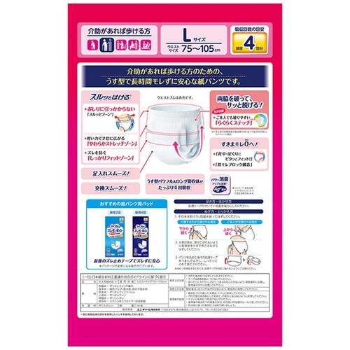 サイズ(約):L(ウエスト75−105cm) | 入数:18枚 | 吸収回数:おしっこ4回分(約600ml) | 単位:1個