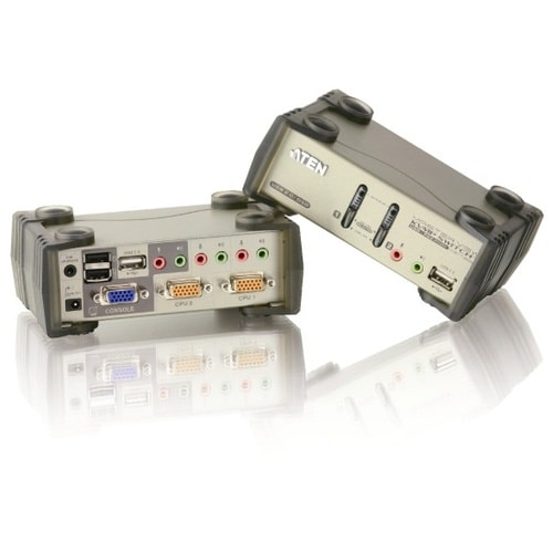 2ポートのUSB2.0ハブを搭載した2ポートのKVMスイッチです |