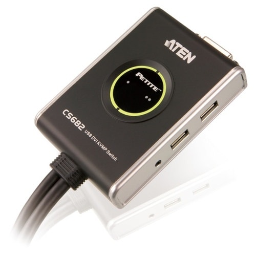 DVIインターフェースとオーディオに対応したケーブルタイプの2ポートUSB KVMPスイッチです。 |