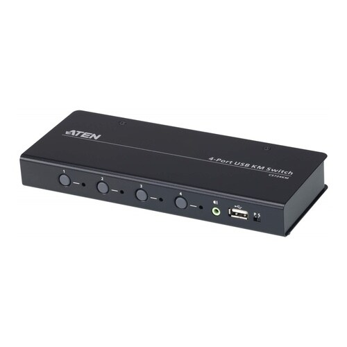 1台のキーボードとマウスで最大4台のコンピューターを制御できる4ポートUSB KMスイッチです |