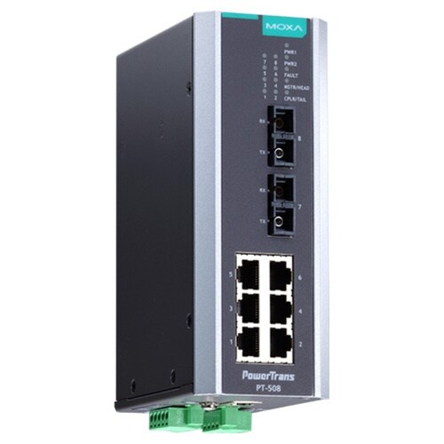 Moxa IEC 61850−3認証マネージドスイッチ 6xRJ45 2xシングルSC 48VDC PT−508−SS−SC−48 A097-8013