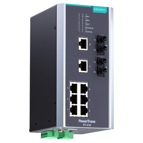 Moxa IEC 61850−3認証マネージドスイッチ 8xRJ45 2xマルチST 48VDC PT−510−MM−ST−48 A097-8028