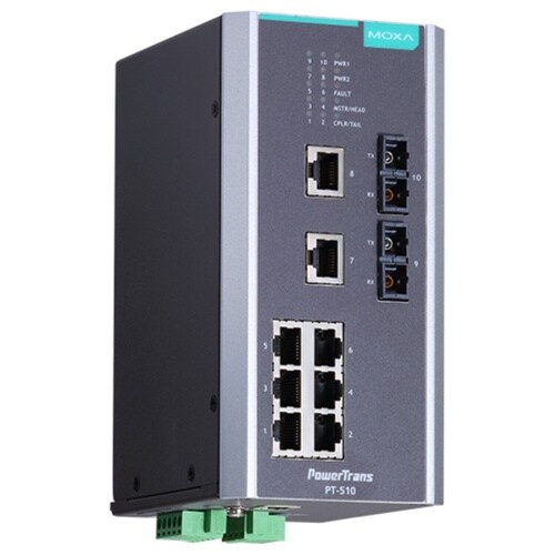 Moxa IEC 61850−3認証マネージドスイッチ 8xRJ45 2xシングルSC 24VDC PT−510−SS−SC−24 A097-8033