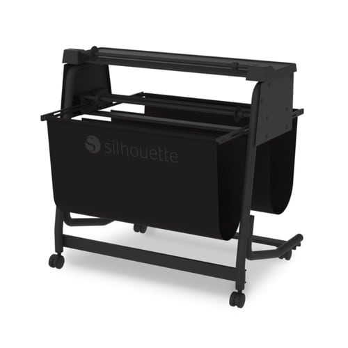 シルエットスタンドは、カメオプロマーク2の機能を最大限に引き出すことができる、長尺カットのサポートアイテムです。バスケットで素材を受け止めることで、省スペースでも安定した長尺カットが可能です。 |