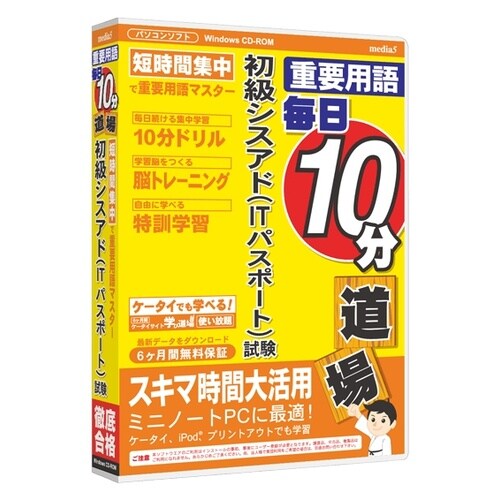 メディアファイブ media5 重要用語 毎日10分道場 初級シスアド試験(ITパスポート試験) 6ヶ月保証版 MD5009S A098-0016