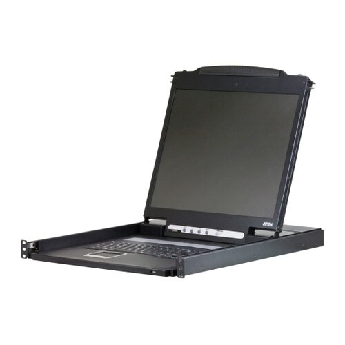 CL1000NはPS/2タイプまたはUSBタイプKVMスイッチのユーザーインターフェースデバイスとしてお使いいただけるLCD一体型コンソールドロワーです。 |