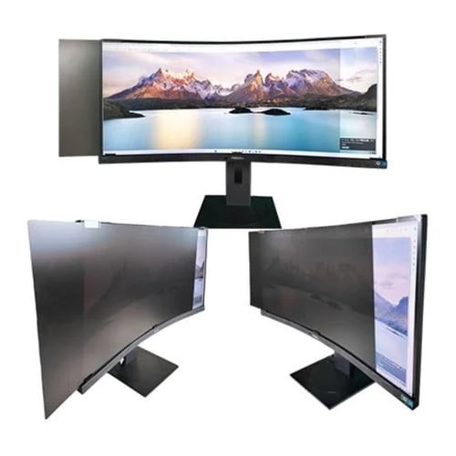 湾曲モニター用覗き見防止フィルター(可視領域60°)。紫外線は99%カット。ブルーライトカット率40%。光沢面側、ノングレア面側双方表面として使用可能。 |