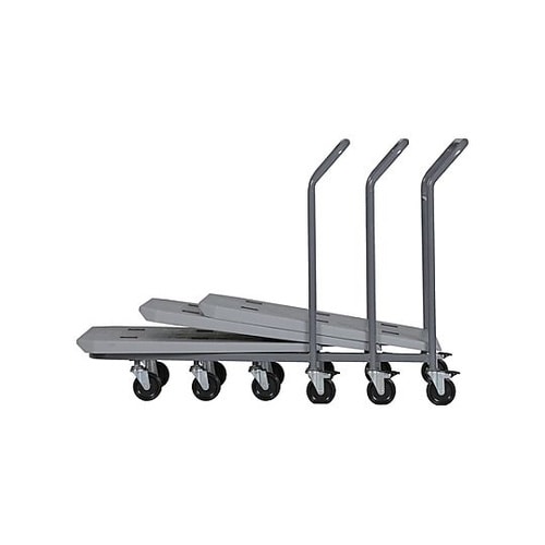 台車を後方から押し込むだけでネスティング可能。大幅な省スペース化が図れます。後輪(固定)キャスターに足踏み式のブレーキを標準装備しています。操作がし易く、確実にロックできます。 |