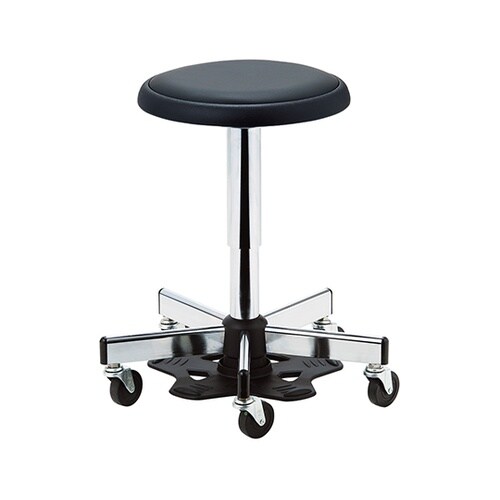 フットペダル式の上下昇降機構付きチェアです。樹脂ペダルでどの位置からでも足で昇降操作ができます。 |