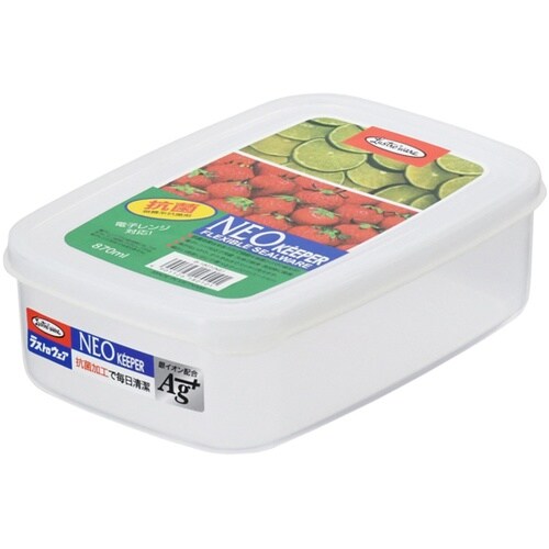 シール容器としては非常に柔らかく密着性の良い特殊配合の原料を使用したフタを使用しており高い密封性能を誇る容器です。本体満水容量870mLの長方形型で同形状の商品とは入れ子になります。 |