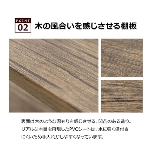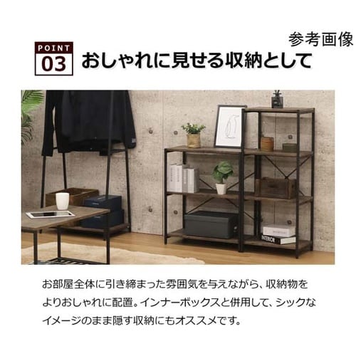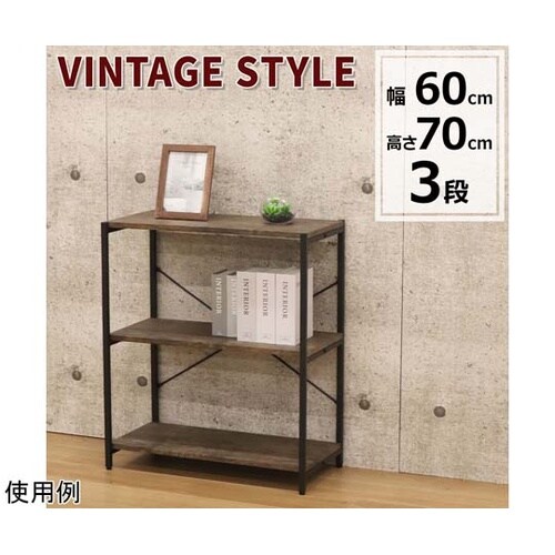 ヴィンテージ調の木目柄が美しい、落ち着きあるブラウン×ブラックの3段ラックです。アイアン製ブラックフレームを細くして、お部屋に軽やかな印象を与えてくれます。 |