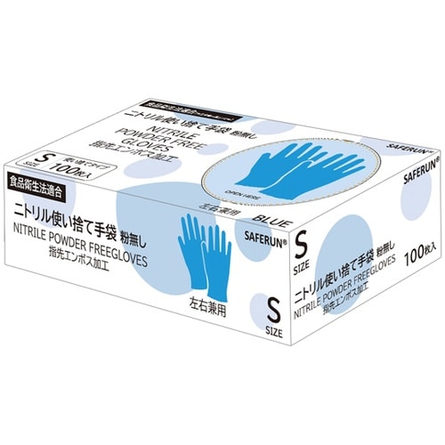 ニトリル使い捨て手袋粉無し Sサイズ マレーシア製 1ケース(100枚×10箱入) J2450C−S