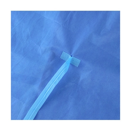AATCC42(衝撃耐水性)≦1.0g、AATCC127(耐水圧)≧50cm、AAMIレベル3適合、SMS不織布を使用したガウンです。ラテックスフリー素材を使用しています。 |