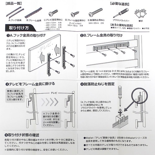 本商品は別売りのWalistシリーズの金具と2×4材または1×4材を使って作る棚専用のものになります。テレビの角度は調整できません。すべてのテレビに取り付けできるものではありません。 |