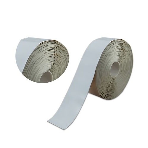 縁はテーパー構造で段差を抑えます。フォークリフトが頻繁に通過する工場や倉庫などに最適な重載型です。防水防油、耐薬品性です。高品質の粘着剤により強い粘着力です。 |