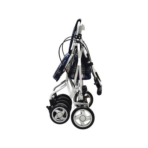 片手でブレーキレバーを握るだけで、両方のタイヤにブレーキをかけることが可能です。折りたためばコンパクトになり、持ち運びにも便利です。 |