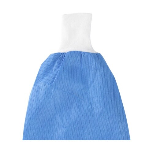 AATCC42(衝撃耐水性)≦1.0g、AATCC127(耐水圧)≧50cm、AAMIレベル3適合、SMS不織布を使用したガウンです。ラテックスフリー素材を使用しています。 |